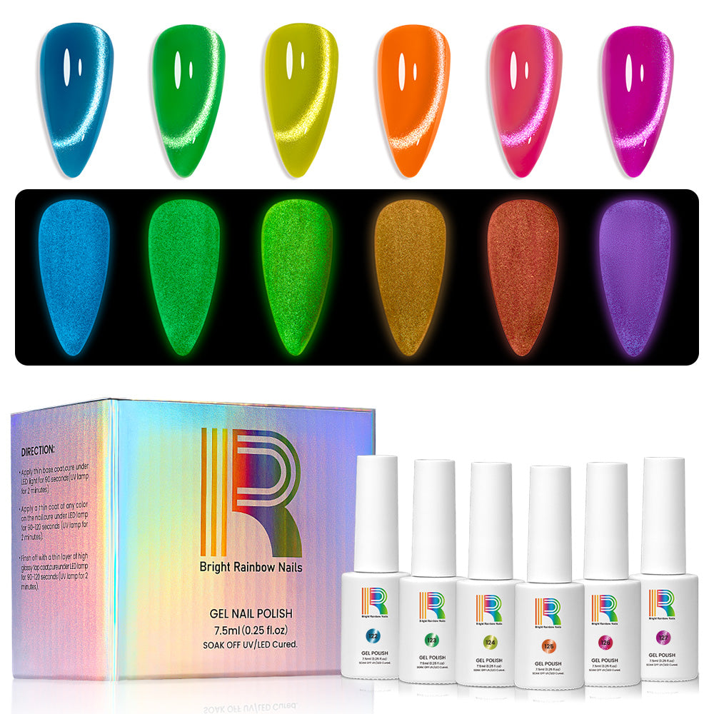 Halloween Bright – Neon Glow-in-the-Dark Cat Eye Gel Polish 6 Colors Set 7.5ml